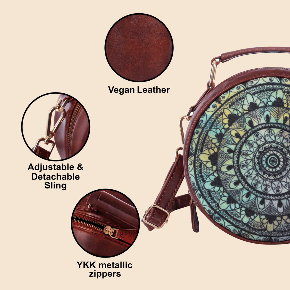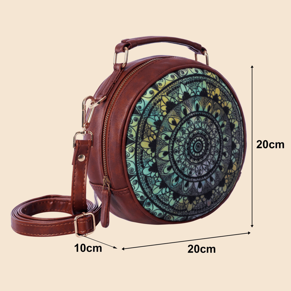 Elevate your style with our luxurious fabric Round Sling bag designed for the modern, on the go individual. Crafted from premium fabrics and sustainable sourced canvas, this bag ensures that you make a statement wherever you go.