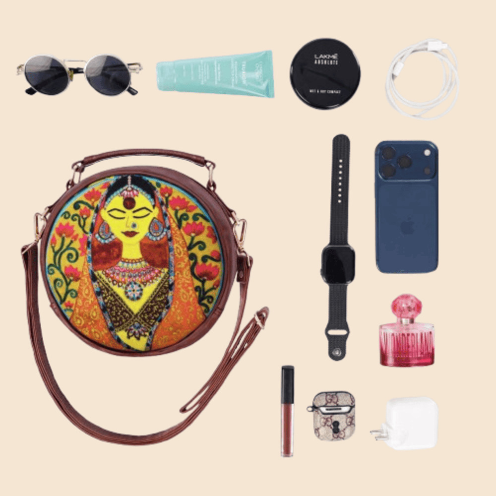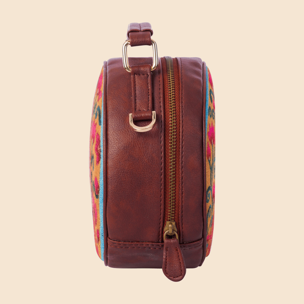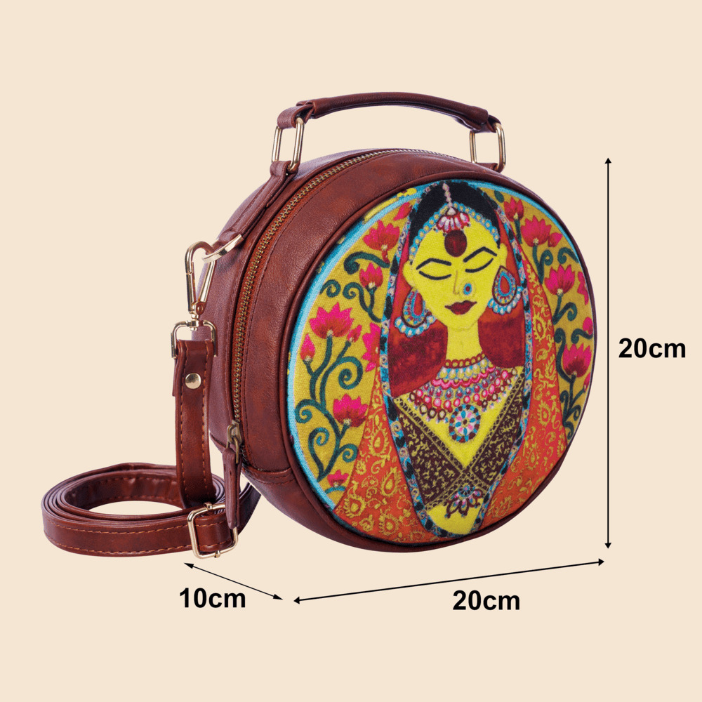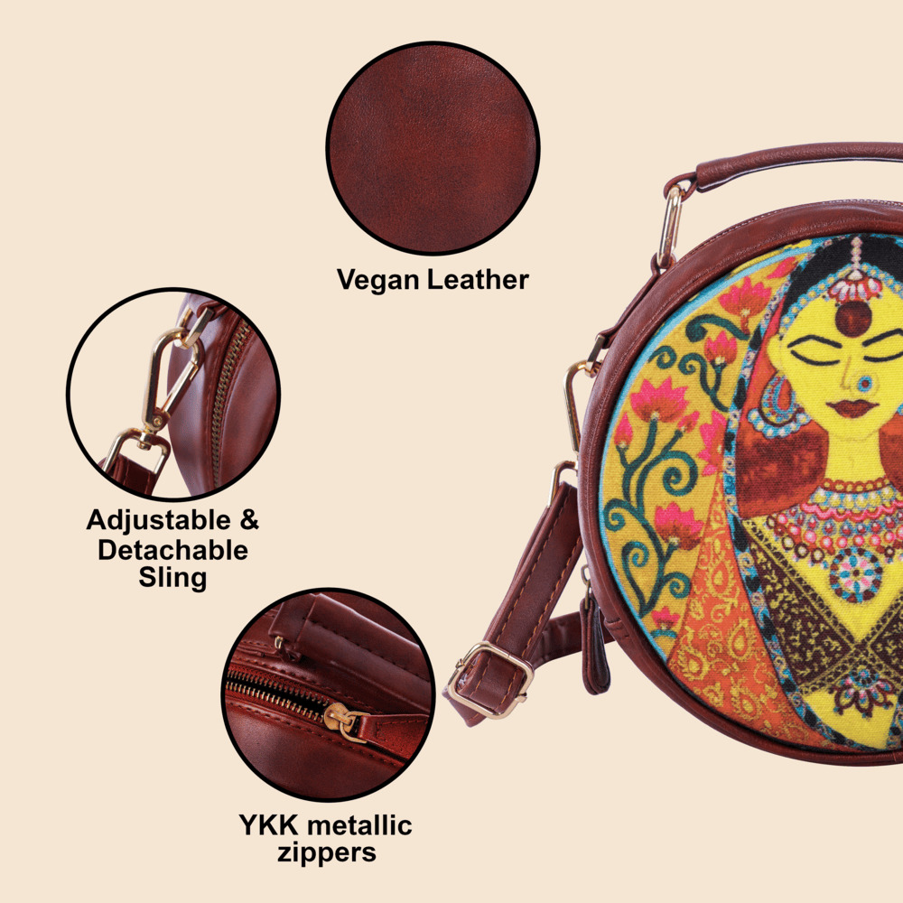 Elevate your style with our luxurious fabric Round Sling bag designed for the modern, on the go individual. Crafted from premium fabrics and sustainable sourced canvas, this bag ensures that you make a statement wherever you go.
