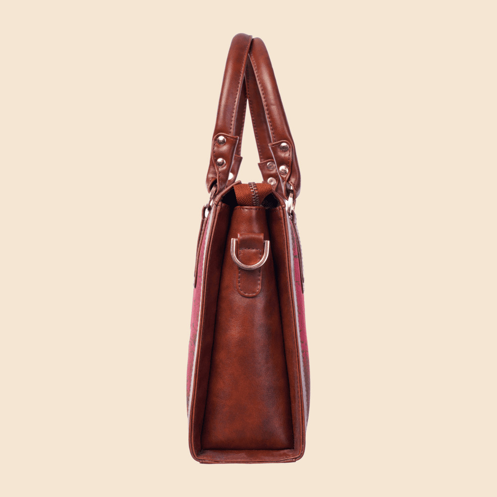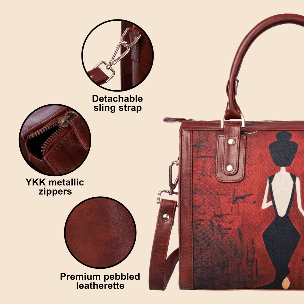 Elevate your style with our luxurious fabric handbag, designed for the modern, on the go individual. Crafted from premium fabric and sustainably sourced canvas, this bag ensures that you make a statement wherever you go. With ample space, it comfortably fits your essentials like your phone, wallet, keys, sunglasses, notebook, and water bottle. With dual lock functionality of a detachable sling strap, this bag offers versatility in style and use.