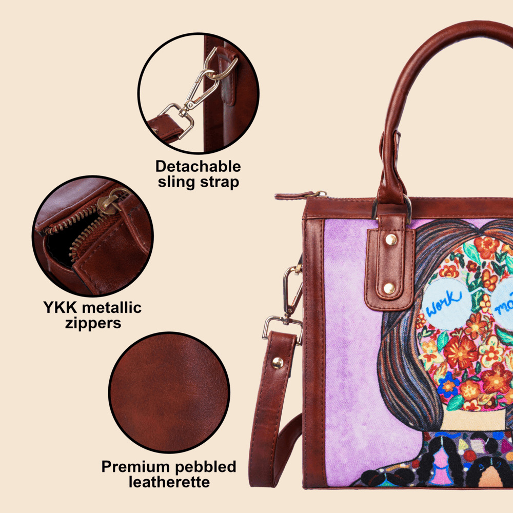 Elevate your style with our luxurious fabric handbag, designed for the modern, on the go individual. Crafted from premium fabric and sustainably sourced canvas, this bag ensures that you make a statement wherever you go. With ample space, it comfortably fits your essentials like your phone, wallet, keys, sunglasses, notebook, and water bottle. With dual lock functionality of a detachable sling strap, this bag offers versatility in style and use.